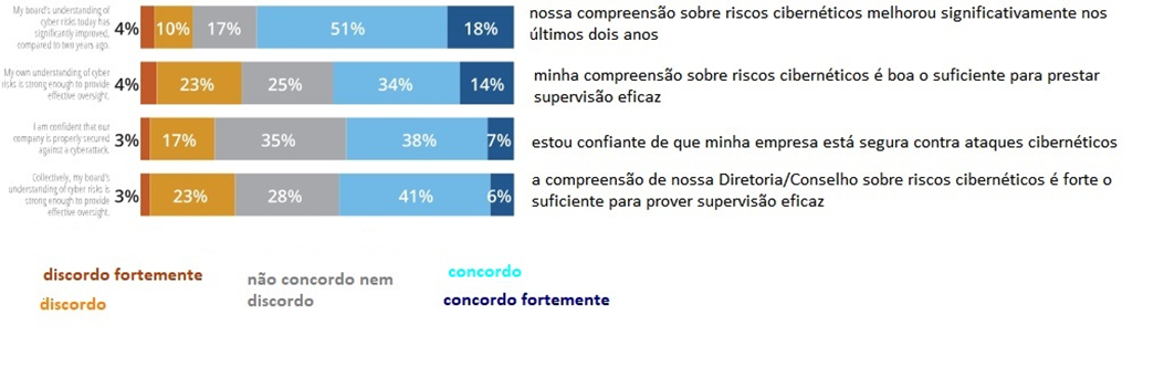 Quando se considera que menos de metade (48%) dos Diretores apontam que seu próprio entendimento sobre o risco cibernético é bom o bastante para dar suporte adequado aos seus Conselhos e apenas 45% deles estão confiantes em sua própria segurança informática, pode-se, no agregado, constatar que há imensas oportunidades e, ao par, imensos riscos nesse aspecto.